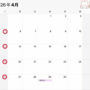 4月のお休みは🔴です✨ 29日の祝日は営業しておりますのでよろしくお願いします&…